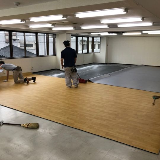 2019年10月に八王子市にオープンした「卓球ラウンジぴんぽん」♪テナントビル2階の貸事務所を卓球場へ大変身!まずは卓球フロアの床作り!防振マットを敷き詰め、その上からスポーツ用防滑マットを貼りました☆